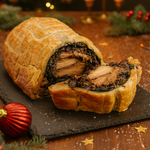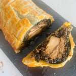 Elevate your holiday feast with our Lion’s Mane Wellington – a plant-forward masterpiece wrapped in our house-made, golden puff pastry. At its heart lies the rich, meaty texture of Lion’s Mane mushrooms layered with a creamy spinach and herb filling, offering depth, warmth, and comfort in every slice. At 500g, it's a stunning seasonal centerpiece, perfect for those seeking a refined and nourishing alternative.