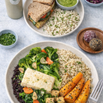 Flexitarian Performance Lunch: A perfectly balanced main course designed to keep your energy stable during afternoon training.